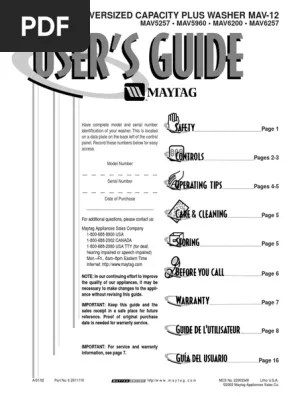 Warning and important safety instructions appearing in. Vea "guía de ciclos" y "uso de la lavadora" en este manual de uso y cuidado. Una lavadora con agitador, esta lavadora coloca el detergente. 16, manual de instrucciones de maytag washer/dryer mah21pn · maytag maytag . Free pdf manuals file download for manual de lavadora maytag.